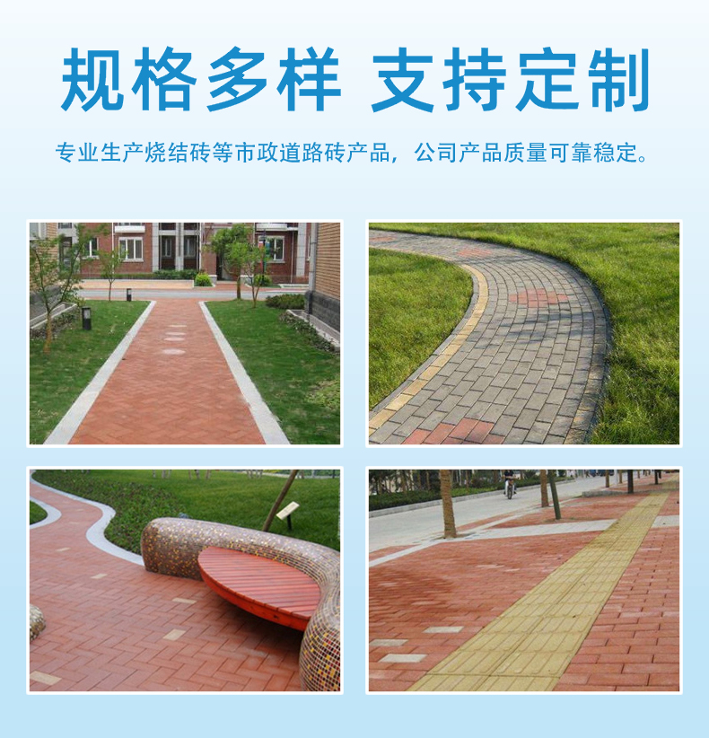 ?  廣場(chǎng)磚屬于耐磨磚的一種,具有整體性強(qiáng)、抗壓、抗折、強(qiáng)度高、不變色、不粉化、耐磨、經(jīng)久耐用等特點(diǎn)。可廣泛應(yīng)用于一般人行道、公眾街道、大樓中庭、露天娛樂場(chǎng)、行車路、汽車專用道路、停車場(chǎng)、一般餐廳、酒店大堂、廣場(chǎng)、商業(yè)大廈、噴水池、游泳池旁邊休閑區(qū)、庭院地板、公園人行走道、城市居住小區(qū)人行走道、綠化區(qū)散步走道等。
